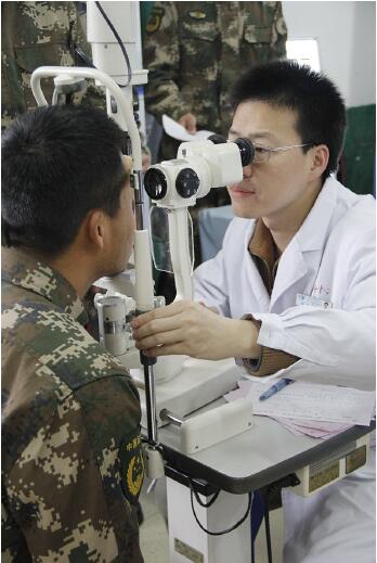 廈門眼科中心董諾博士為武警檢查眼睛