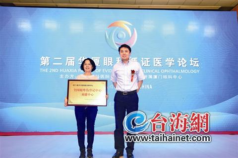▲蔡錦紅主任領取“眼外傷登記中心福建中心”牌匾
