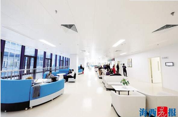 現(xiàn)代化的裝修、暖綠暖黃為主色調(diào)的環(huán)境讓人眼前一亮??剖议T診和住院樓層各種指引標(biāo)識(shí)清晰明確,隨處可見(jiàn)溫馨提示,還有志愿導(dǎo)引人員。階梯形前臺(tái),讓坐在輪椅上也能與醫(yī)務(wù)人員無(wú)障礙溝通。等候就診時(shí),你可以在按摩椅上來(lái)一場(chǎng)放松之旅,也可以漫步VIP候診區(qū)長(zhǎng)廊欣賞名畫。在休息區(qū),休閑吧和兒童游樂(lè)區(qū)等可以緩解診療時(shí)帶來(lái)的陌生感和緊張感。同時(shí),五緣院區(qū)還配有超千個(gè)地面、地下停車位,方便“有車一族”到院泊車。