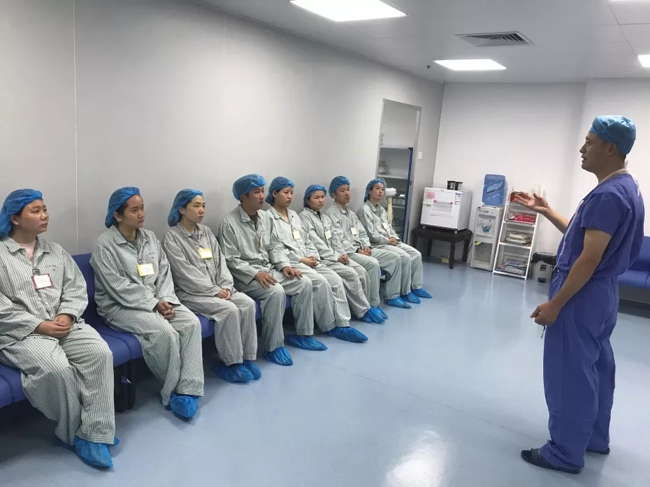 主刀醫(yī)生揭黎明主任為摘鏡的醫(yī)生進(jìn)行宣教,講解手術(shù)注意事項(xiàng)
