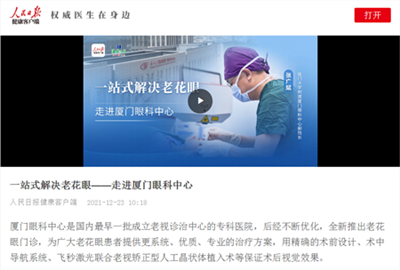 人民日?qǐng)?bào)走進(jìn)廈門眼科中心,專題報(bào)道老花眼診療,張廣斌院長(zhǎng)受邀做專題采訪。海西晨報(bào)、海峽導(dǎo)報(bào)、東南早報(bào)、健康時(shí)報(bào)、今日頭條、百度健康、騰訊視頻、愛奇藝、新浪微博等十余個(gè)平臺(tái)聯(lián)袂報(bào)道!