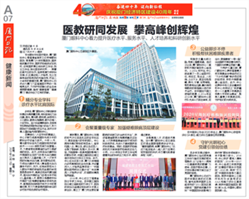 恰逢廈門經(jīng)濟(jì)特區(qū)隆重慶祝建設(shè)40周年,乘著改革開放的東風(fēng),廈門眼科中心與特區(qū)同頻共振,著力提升醫(yī)療水平、服務(wù)水平、人才培養(yǎng)及科研創(chuàng)新水平。廈門日?qǐng)?bào)、廈門晚報(bào)、海西晨報(bào)、海峽導(dǎo)報(bào)等媒體進(jìn)行專題報(bào)道。